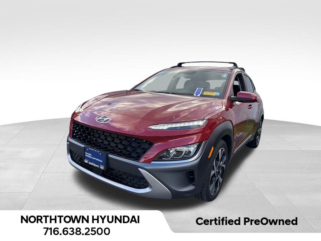 Certified. Pulse Red 2022 Hyundai Kona Limited AWD 7-Speed Automatic 1.6L I4 DGI Turbocharged DOHC 16V LEV3-ULEV70 195hp